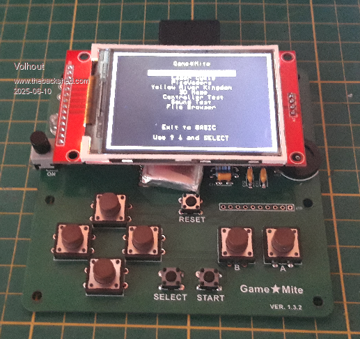 Hi Kevin, That works, but you need the "alternate install" from Tom's documentation, and in several of Tom's programs small modifications must be made. (avoid reserved keywords and such). I have a Game*Mite running 2350 with RC25 on it. I don't know how to create a UF2 file from it's memory, but otherwise I could send you the patched files (or Tom may do this on his Git once 6.00.02 is released) It is hard to get the old pico off, so I did build (with Toms generous offer for a blank board) a new one. The new one I have a small 500mA lipo between 2350 and LCD, mounted the aux connector top side, and am still looking for a small speaker. So the whole thing is very low profile. Thinking about a housing. And replace the 3 switches (RESET/SETUP/START) with a slightly taller stem. Volhout Edited 2025-06-10 00:45 by Volhout PicomiteVGA PETSCII ROBOTS |