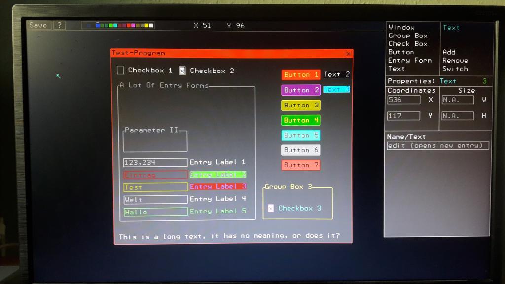 Update: - Added selection between Numbers only / All Chars (Entry Form) Now supports these resolutions so more users can test or play with, if they want: - 848x480 (Widescreen) <- as seen on the image below - 720x400 (Widescreen) - 800x600 4:3 - 640x480 4:3 - small bugfixes ![]() File: gui_editor_b22a.zip Greetings Daniel Edited 2025-07-08 04:18 by Amnesie |