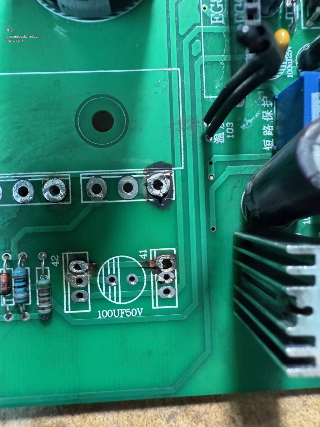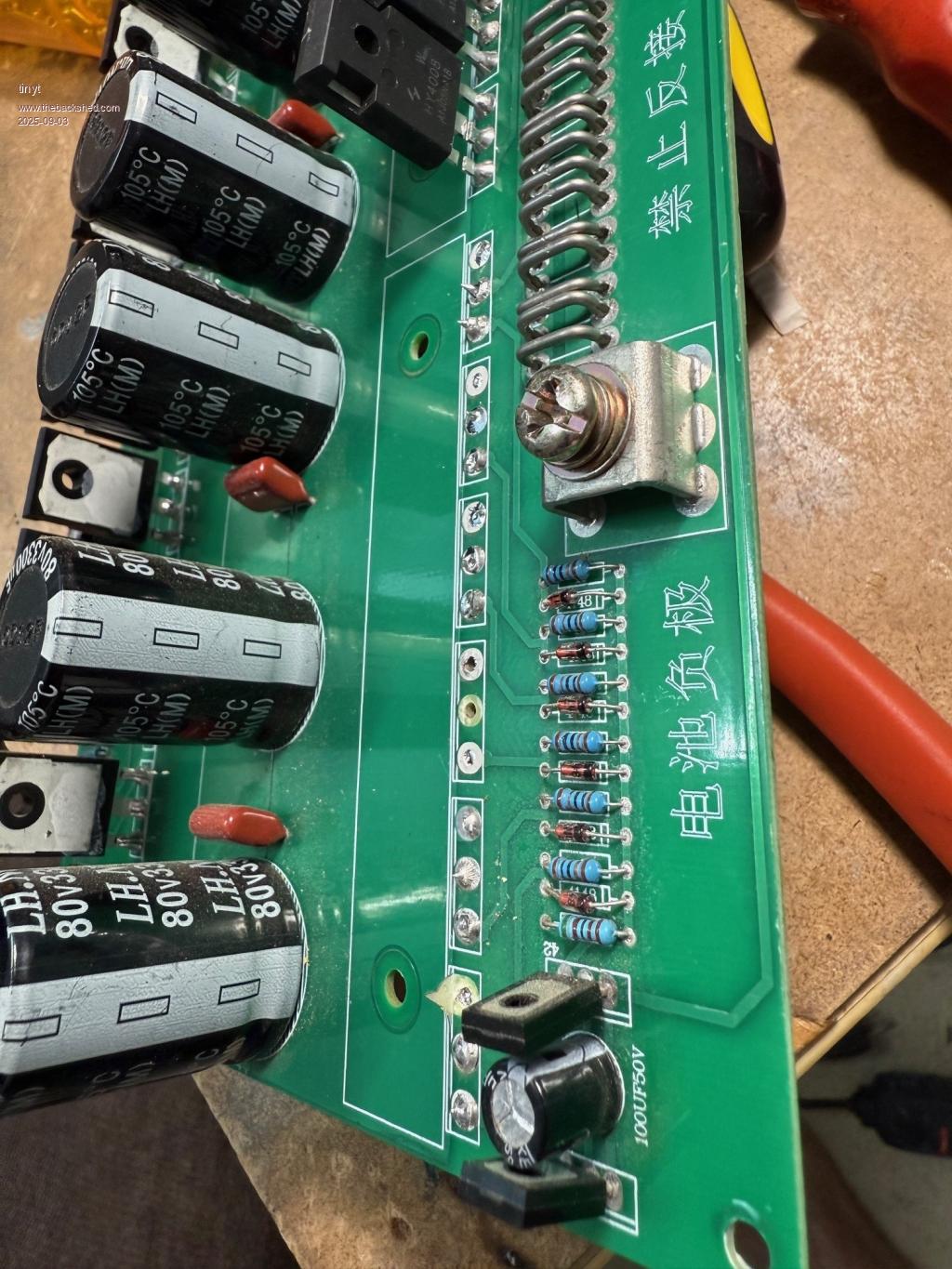It also took out the 48V to 12V buck regulator and opamps. Still testing for more damage. Way back I started a technical manual for my sons when I am gone. But I have not finished/updated it. I think this page is still good except for the auto pre-charge board which is now replaced with a simple pushbutton/power resistor combination. |