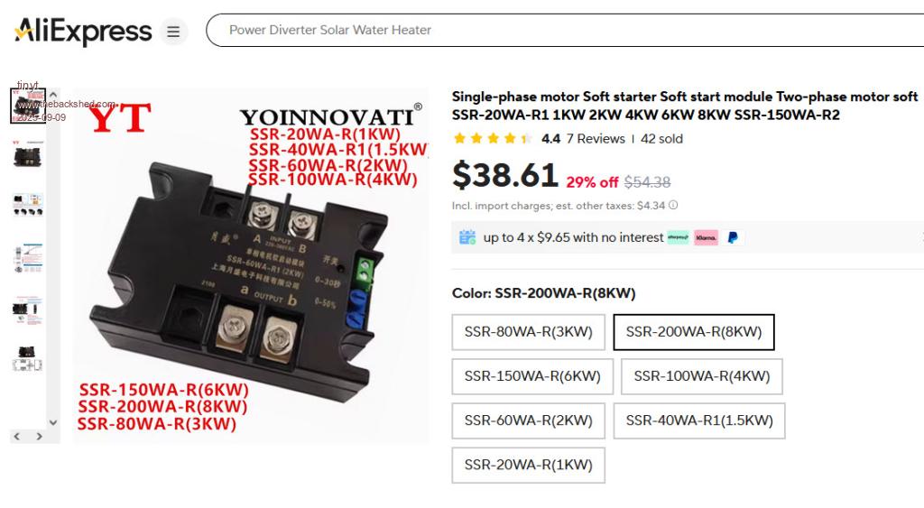 Thanks for the tip. The HVAC that blew the inverter is newly installed (about 8 months). Nameplate says 2024. ![]() Here are some pages of the spec (schematic included). goodman-glxs4ba6010-specification-some sheets.pdf We have decided not to power it with the inverter, we think it is overkill to power it with our inverter, besides battery capacity is not enough to power it long enough. My other son's A/C is much older, close to 30 years and still running. We have operated this with the inverter several times already with no problem. But, we don't want to stress the mosfets, so we are going to use soft start on this one. ![]() Micro-air is still not affordable, so I ordered these. ![]() ![]() The plan is to set the ramp voltage time of the SSR to about 1/2 second or even less so as not to stall the motor, then with a tbd. delay circuit activate the HD relay to bypass the SSR. This way we don't overheat the SSR. I hope this works. |