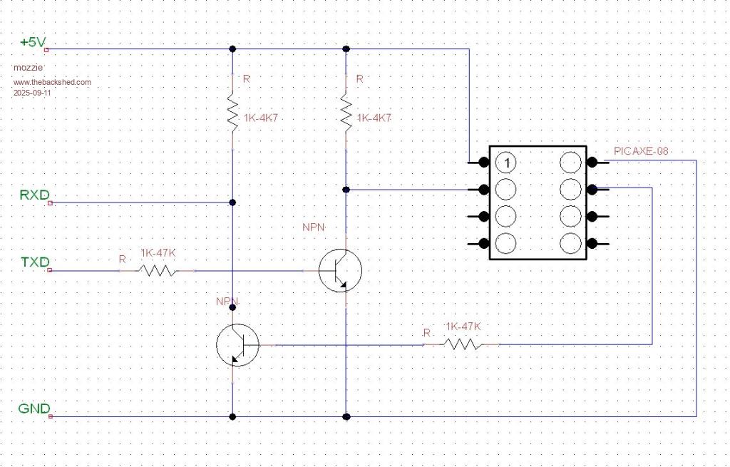 So that is standard TTL Serial but the PICAXE requires Inverted TTL Serial.
