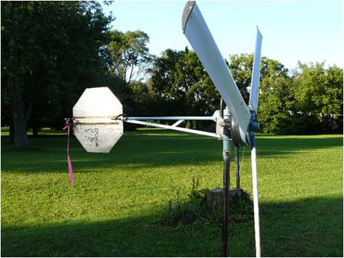 On home-made blades and fastening them: Having viewed the tensile "parting" specs on T-6 aluminum one thing I can tell you is it actually gets stronger just before it parts. This is why I make all my blades out of solid aluminum. I don't worry about airfoil or drag; I merely let the flat blade bite the wind and that's that. One thing I should mention is; the longest blade I currently manufacture and use is 3 feet long. That makes the total sweep a little over 6 feet (diameter). My "normal" length blade is only 24 to 30 inches. Many years ago, I manufactured a "Clark Y" out of sheet aluminum and was able to twist the thing so the tip ran with almost no pitch, while the root was set at 45 degrees. If anyone is interested in doing it this way, say so and I'll throw up a tutorial. By the way, in those days, I ran 7-foot blades in a Jacobs (three-blade) fashion and each blade weighed in at less than a pound. The root was through-bolted with massive solid-aluminum plates to discourage wandering. I used (and still do) a solid aluminum hub plate and twist the tangs to achieve pitch. There was also an aluminum tube that ran up the center just under the apex of the airfoil to discourage bending when the tail spun the turning blades across their axis of rotation. The tube was pop-riveted to the blade. My thinking is that if the blades are manufactured on the order of a pinwheel (lightweight and balanced), the forces of nature will have to get really out of hand before any trouble arises. My solid-blade design would have to spin faster than any wind will make them go before they even approach parting speed. Oh, by the way, solid aluminum blades make a rather awesome "gong" sound when a bird isn't paying attention! To give equal time, a careless bird can really wreck a hollow Clark Y blade! Another "feature" of a hollow blade is they tend to "pump" a stream of air through the center of the thing and out the tip. This somehow spoils some of the noise in high winds. Nothing difficult is ever easy! Perhaps better stated in the words of Morgan Freeman, "Where there is no struggle, there is no progress!" Copeville, Texas |