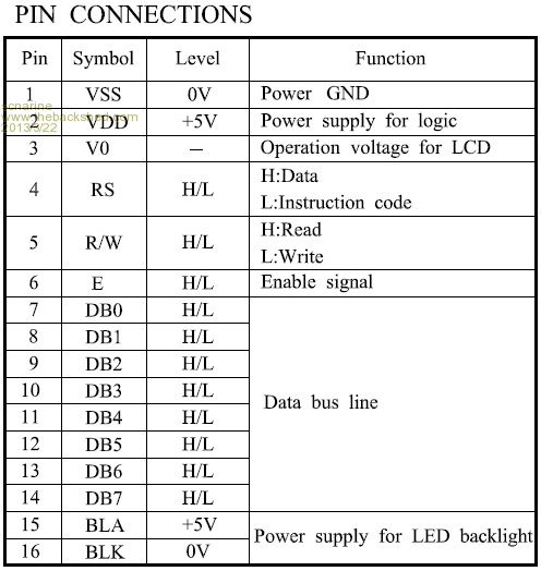 B.7 to DB7 B.6 to DB6 B.5 to DB5 B.4 to DB4 B.3 to E B.2 to RS That is how I have it connected see my pin config