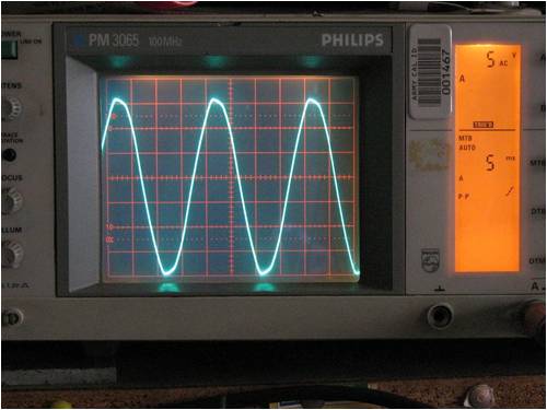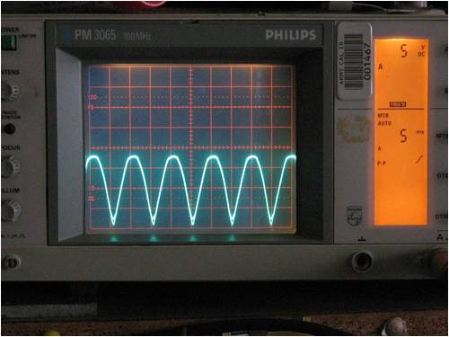 As you can see from the bottom of the wave to the top it is 35 volts peak to peak. This is with a bridge full wave rectifier added.