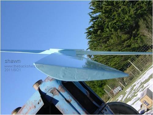 I didn't like bolting lead on the outside to come loose and they were quite out of balance so i decided to put the lead at the end of the blade instead, what i did was drill a hole into the blade on an angle toward the tip i did not quite drill all the way through, not as much lead needed at this end then i just poured hot lead in there for more weight just drill some more holes then when finished and grinded back i used some car bog to tidy up and prime.