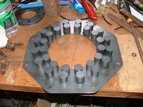 Today I picked up the lasercut steel bits. Pretty happy with the quality and price. Using the magnet template I made earlier, I fitted the magnets to the steel plates. I think the magnet template is a good idea. It was just like putting round pegs into round holes. Add a drop of superglue and drop the magnet in, I didn't have to worry about positioning the magnets, the only thing I had to think about was which pole, N or S. The template was about 8mm above the steel plates, so I could blow down each hole to clear out any dist or wood fibres before dropping in the magnet. Next up I need to make the bearing. Glenn The best time to plant a tree was twenty years ago, the second best time is right now. JAQ |