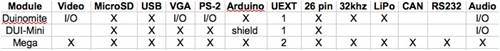 I tried to do a comparison of Olimex choices assuming the user wants Maximite plus Arduino configurations: 1) Duinomite plus Duinomite I/O Board = $42.80 AUD 2) Duinomite Mini plus Shield board = $42.80 AUD (+ add 26 pin cable) 3) Dunomite Mega = $48.92 AUD Roughly the same price. #1 seems like the best value though not a major advantage. Mega has the most features of any version so it lives up to the name.