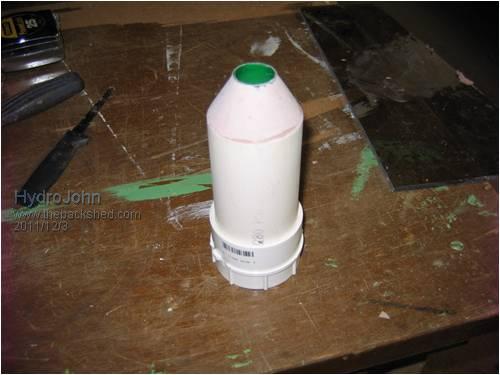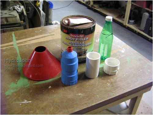 Next I began working on improving the efficiency of my nozzles. I tried to fabricate a twin nozzle as Don suggested, but without much success. I was able to make a nozzle using different size funnels and coke bottles that did quite well.