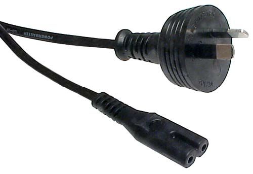 Product Description IEC-C7 Appliance Power Cord - 2m Length 2-core light duty power cord as used on some small appliances and laptop power supplies Fitted with an IEC C7 / Figure 8 connector and Australian 2-pin mains plug with insulated pins compliant with AS/NZS3112. ============================== You can get them in local areas with local AC standard plugs on the end. I'll have a bet that most users will have a box with a few in it.