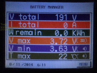 For a good while now, I have been running 14.8v chargers (across 4 cells) and a single layer of Relativities. The Relativities are not overlapped. The 14.8v chargers are driven from 240vac switched by a relay when the Zivan NG3 finishes (at 182v) and takes the pack to 192v. The cell voltage difference every morning after charge is usually around the same, lowest 3.63v and highest 3.72v. Picture taken this morning, charged last night after being at another car show yesterday. (this car is in lots of shows, I don't write about them all)