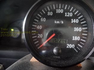 VDO speedo reading now, 76925, minus speedo reading when fitted 17227 = 59698km