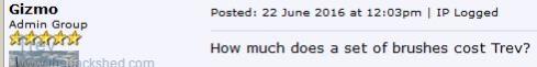 How much does a set of brushes cost Trev?