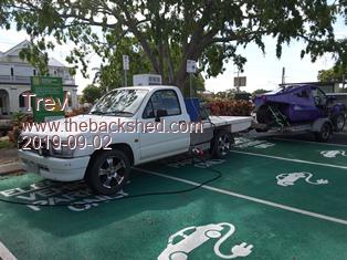 EV Hilux and T-Rev, electric trike, built from scratch. I will do a separate thread on T-Rev some time later. T-Rev was in 3 car shows in the last few months. The EV Hilux towed T-Rev on the car trailer to the shows (you can see the trailer in the background of car show pic). T-rev is almost finished, should have it registered soon. Please don't carry this on in this thread. This is an EV Hilux thread and this posting is on loads and performance.