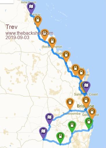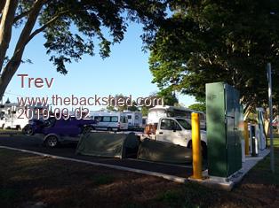 Here is a snapshot of the charge points on the journey. One camping spot was Childers. Childers charge point is in the back of the RV motorhome/caravan free camping spot. A great location.