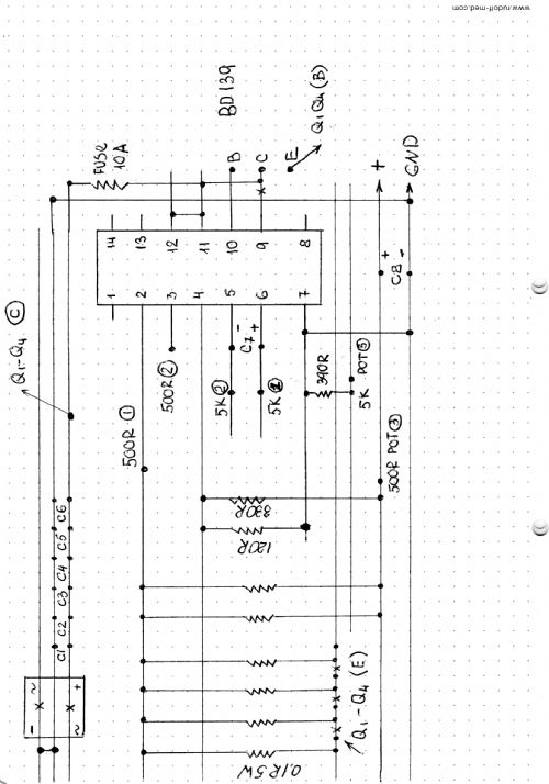 Pete i dont understand you -i have collectors on common + after bridge and emitters to each of 1om 5w resistors.whats the problem you see.