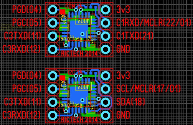 This layout also allow re-use of MCLR pin - it becomes the COM1 RXD when you solder-blob across the pads at the top of the module. You just need to move the solder-blob, if you ever need to update the firmware. Smoke makes things work. When the smoke gets out, it stops! |