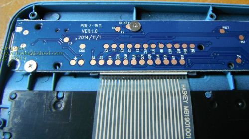 UPDATE: Here is a photo of the keyboard membrane once removed from the plastic case by drilling out the melted plastic locating dowels: