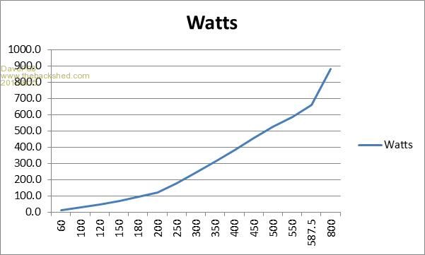 Here is a power output graph of a single 36 pole Delta F&P stator with black rotor cap operating under optimum conditions. RPM is on the horizontal axis.