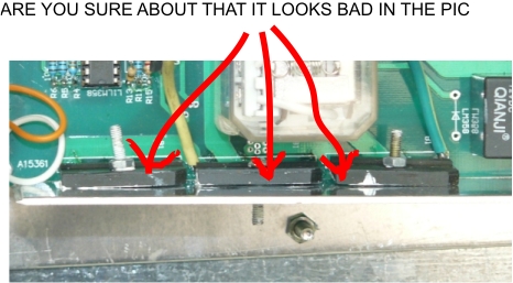 Hi ericvr, is the unit above unmodified? I notice the components in the closeup at the bottom of the last photo. Someone must have been in a hurry on the assembly line. These components are mounted on a heatsink, presumably for a reason. I notice the gaps between the components and the heatsink. Maybe the manufacturer has built in a place for the equipment to fail. I cannot think of any reason the components would not be firmly bolted to the heatsink. You have removed the cover so warranty may be void. I would fix the problem before commissioning. cheers, Gordon. become more energy aware |