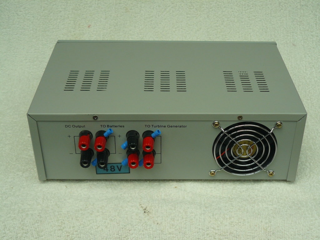 Here are some more pictures of the equipment that I used: These pictures are of the control unit that came with the 1000 watt 48 Volt wind generator from A+ Imports. As you can see it is a shunt type regulator as shown by the "U" shaped heating element on the right hand side in between the two fans, of which I hope, one sucks and one blows. The last photo is of the circuit board. The cable that we are using is 1.5 mm diameter conductors which should be enough to carry the current of each phase, without too much voltage drop. has anyone measured the current of each phase of a three phase generator? I worked it out at about 7 amps per phase for 1 KW at 48 volt. because the total current for 1 KW @ 48 volts is approximately 21 Amp. Ericvr limited greenie |