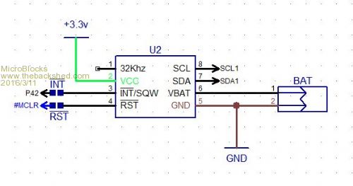 The secondary oscillator pin on the PIC is pin 34 and that pin is currently hardwired as a console RX. My thinking is to use the INT/SQW (1Hz) from the RTC is that at least you can count the number of seconds since the last time you read the info from the RTC and have an accurate clock that way. Microblocks. Build with logic. |