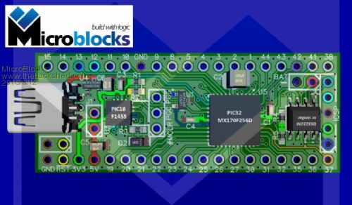 Currently changing the layout and removing/replacing some parts to allow for a better voltage regulator performance (SOT-89). Also changed the supervisory circuit to a standard use to allow connection of a pickit3 to the PIC32 for direct programming & debugging. Still struggling to add pins for the console (they are now exclusively connected to the pic16f1455 for USB-Serial). The TX could be used to wakeup the pic so i will try to at least make that one available. Microblocks. Build with logic. |