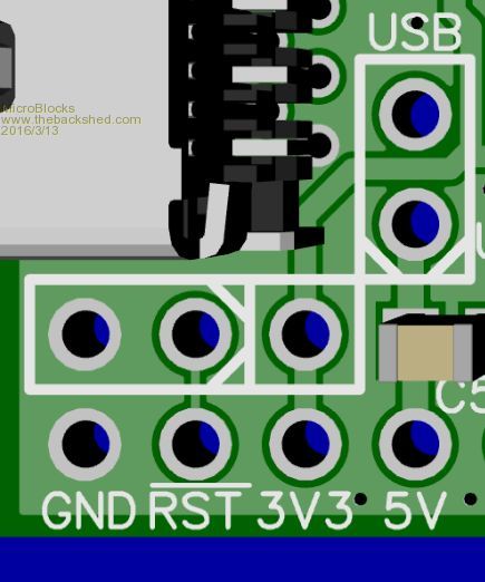 The reset pin is right next to a GND pin, so just add a header. If you plug this in a breadboard, push a momentary switch between the GND power lane and the RST pin. If you use a terminal to program it, press CTRL+R and the PIC16F1455 that acts as a USB-Serial (also programmer) will pull the #MCLR pin low and resets the PIC32. The choice on what to add and what to leave out is always a difficult one. The same goes for adding a LED to indicate power. Maybe nice to have but if you have a USB connection then that is a good indication that power is available. For use with a battery a LED uses more power then the PIC32 and PIC16 together. The list of things to add and leave out goes on. The USB header (to enable power from USB) is also such a case. Many want a diode to protect against connecting USB power and external power. Others want a PTC to protect against large currents (which the voltage regulator already does) etc. The USB header leaves that choice open. Want a diode, then add it. Rather have a PTC, well just add it. :) I think a jumper is the easiest solution and still offers those possibilities. If used as a uMite then a reset is hardly necessary. When programming you would more often use CTRL+C to stop a running program and give the command NEW to erase everything or the command RUN to start it again. I find myself almost never using the reset switch. In other cases (arduino/ direct PIC) it is used more often. Above is my way of thinking to make it the most versatile and useful. Microblocks. Build with logic. |