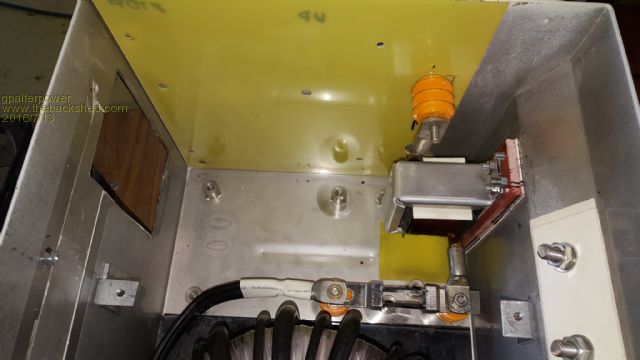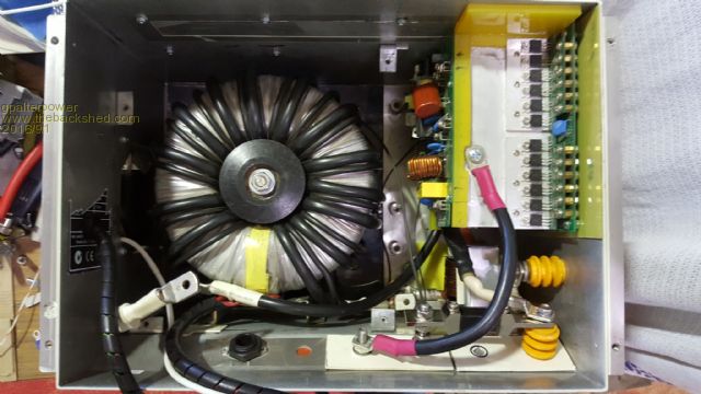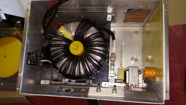 The toroid is covered with the original metal dividing piece but slightly cut down to size to accommodate and mount the circuit breakers and connecting strip