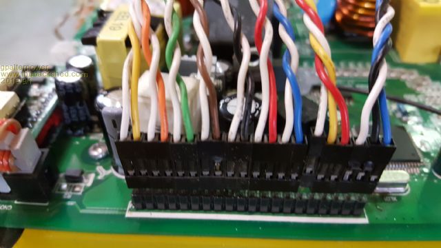 I'm not too sure of the pinouts of the main board or how to get the thing fired up, so I added a wire to each and every of the 20 pins. I was originally going to use some computer ribbon cable( which you may see in the second pic), which fitted neatly into the 20 pins but the wiring was way too small and fiddly to work with. Any help on getting this baby going would be appreciated