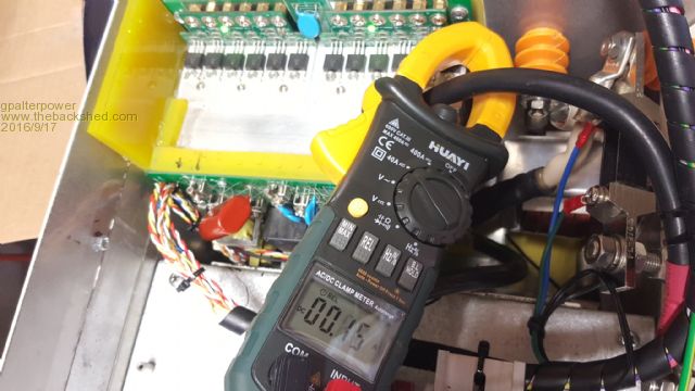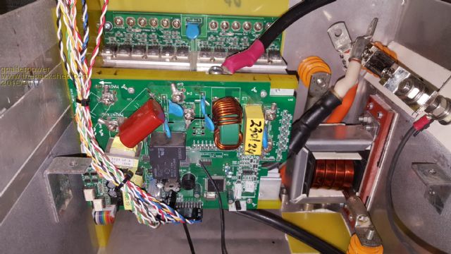 Tinker is technically correct, although in real life that inverter will not give a hoot.. So thats not it. I am wondering if and how you are supplying the control card with the 240v that it monitors, and also the current sense. I cannot see any wire going to the terminals on the control card in that picture. This might explain why it just went gently ballistic... trying to find the 240v, and kept driving the fets to find it perhaps..... ie without a control voltage, it will wind up the pulse width to try to find the AC signal. pics of the control card will help. but it looks that kind of problem, or a short on the output... but that would become obvious, as 90 amps is near 5kw output... you'd notice something. .....oztules Village idiot...or... just another hack out of his depth |