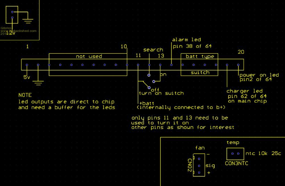 Have you got the three pin fan organised as per diagram above? Without a three pin fan, it will stop early on..... ie... once it decides to turn on the fan, it must see the tacho signals or it stops. You may need a zener across the sense resistor to stop over voltage tantrums.. depends on how you charge your battery. best with it. ...........oztules Village idiot...or... just another hack out of his depth |