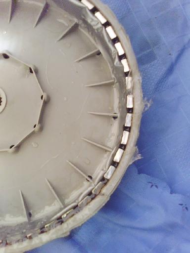 hi guys, you are right gill,i just removed the duct tape and the duct tape had blistered a bit leaving the finnish a bit irregular, i didnt get any leakage only where i spilt the resin whilst pouring, choice now is whether to clean up the mess or remove the magnets b4 it sets completely. i have a lathe so if the runnout isnt too much i might just skim it and sand down to smooth. i realy didnt set the angle i found as i mounted the magnets i could only twist so far and then the magnets rocked so i reduced the angle untill i found the best seating position without being upwright. i think i have about 6 to 8 degrees i will check with the protractor after cleanup. the job looks good with good resin penetration thro-ought i will also do more strengthening of the outside diameter probably increase it about 5 tp 8 mm. i read someware the metal laminations are to reduce the "flux" affect from rotation magnetic field. im not sure what that is but as i am using much more stronger magnets would extra metal bands help ballance the rotor in an electronic term not wieght/vibration? martin free power for all McAlinden WA |