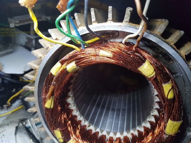 Got the 2 speed motor out, bloody pain in the arse to work on, I had to modify tools to get the Allen screws out that held it in. The stator is out now and all the wires are buried between the windings, hopefully, I can pry them apart enough without damaging the windings. If all else fails I will just rewind it, I did my 8KVA generator a while ago, it is a 12 wire stator and that was more complicated than this motor. ![]() Tony I have seen VFD's like this up to 7.5KW designed to run off single phase, a 10A GPO is not going to handle that. There are only 10 types of people in the world: those who understand binary, and those who don't. |