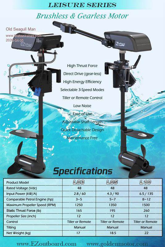 Hi Trev. Excellent project, did you get the motor from an Australian seller, or directly from Golden Motor? I'm interested in buying one of there L05 ![]() motors and the is a paypal option, on their wed site. It would be perfect for my old 20foot banks dory.. |