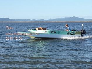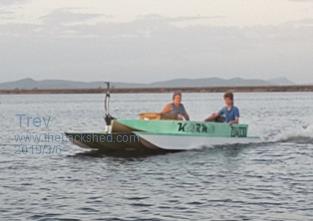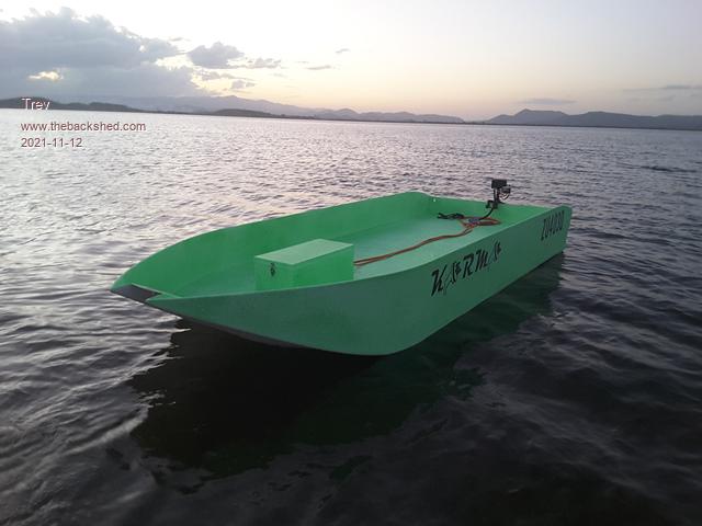 Next step may be to fit it with hydrofoils. The Manly ferries used to do well with them when they were running on Sydney harbour. It would reduce drag a lot and you should be able to get a fair bit more range. Maybe look at those surfboards that are being used with winged keels under them to lift them out of the water. Anyway looks like you are having fun, that is the best thing to do in life. Cheers Pete |