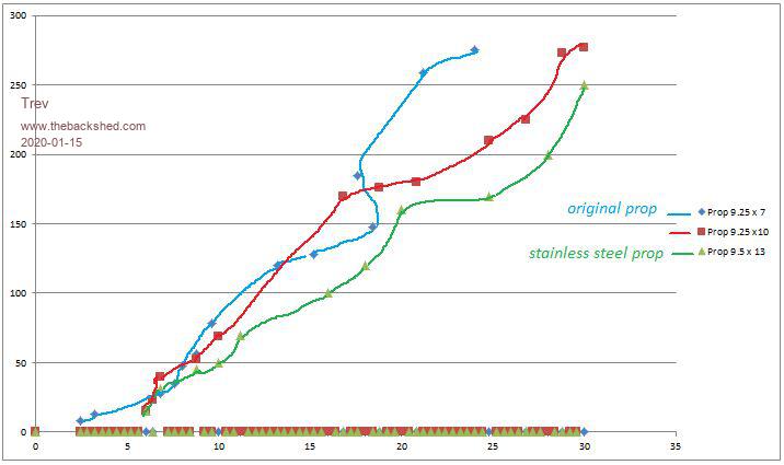Hi Trev, Have been watching your progress. I used to build Aluminium boats, never really got the chance to try one on the water, however the boss was interested in trying a new prop on the boat he had as tho old prop was worn. Now with the good new prop at full RPM (old 2 Stroke motor) it managed 53kmh, then after that we tried a larger prop and then found the motor could not reach full RPM I think it was a little slower too, can't remember it was long ago, Extra friction may also have been a factor. If you are getting speed with the new prop and lower amps I think you are on the right track. Also do you know what rev's the motor is doing? I suspect it has reached its maximum rpm with that SS prop, hence the lower current at that speed, If I read this correctly. Nice work BTW. ![]() Cheers Aaron Off The Grid |