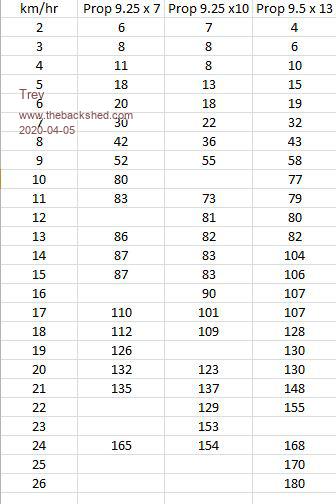 Several weeks ago we changed back to 1 motor. And went out to the dam for testing. Had to cut the transom / motor mount down so the cavitation plate would be below the bottom of the V-Bottom. There is less boat draft at rest, but with the extra 100mm cut out of the motor mount to get is low enough, bring the motor about the same height to the water level as the 2 motors, mounted higher, but weighing down deeper draft. I need more buoyancy, to reduce the draft. ![]() ![]() We tested all 3 props on this single motor and boat configuration.No significant difference with the 3 different props. The first column is speed,km/hr, then under each prop size is the current (amps) at that given speed. Of course my measurement reading is probably not all that accurate, but gives an idea of what is happening. Edited 2020-04-05 12:45 by Trev Trev @ drivebynature.com |