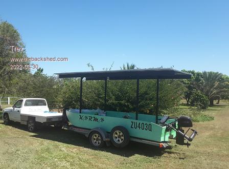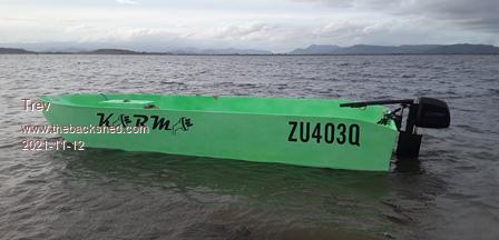 Thanks for your input Boppa. I was wondering, how do I compare to a petrol outboard. I want to run a 20HP petrol on this boat to compare but I don't want to own a 20HP petrol motor. Yes we did weigh it. As originally made, 114kg . With the second pontoon width added, 130kg. Golden Motor weight is 50kg. Lithium batteries, 48v (16 cells) x 100Ah-B, plus box, 72kg The Golden Motor is 10kW. At 52v x 189A = 9828W. My conversion makes 10kW to be 13.4HP. But they say it has the performance of a 20HP petrol. Trev @ drivebynature.com |