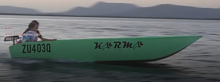 It is around a year and a half since testing. Kerme has been cut up. ![]() ![]() And re-modeled. I won't go into all the details of the fibreglass work, but we have cut a lot of weight out, and used much lighter foam for buoyancy. The floor is above waterline and no space for water to catch in the boat. No need for pump. Any water runs out for itself. Basically it is a floating cork. Around 70kg for the hull. ![]() The battery pack is 48v 100Ah. Around 50kg. The first test is with the pod motor L10, 22kg. And 2 people, add another 120kg. Total weight on test around 262kg. ![]() Here is Kerme with the L10 pod motor in action. ![]() The data numbers km/hr Amps 4 3 5 8 6 11 7 15 8 23 9 32 10 40 11 53 12 66 13 68 14 77 15 90 16 104 17 107 18 108 Also measured distance traveled during testing, 2.02km and used 24Ah. Of course this is not all that relevant as the speeds were all varied. Then was the test on the 20hp motor, 40kg. Total including 2 people 280kg. ![]() There is a few gaps in the data numbers. The water was very rough with strong wind that day. We did the testing cross wind to avoid the wind hindering or helping. The choppy water didn't help either. Don't know why but could only get 158A on that day. km/hr Amps 5 6 6 13 7 23 8 35 9 37 10 11 66 12 73 13 14 76 15 16 17 100 18 19 20 21 22 23 24 158 In comparison 1) Original shape. 114kg plus .. Total 346kg. No performance numbers. This is like a bath tub. But still can't sink. Floor is above waterline with self drain holes. 2) With the second pontoon width added, 130kg plus .. Total 362 or 372kg depending which motor. Max speed 24km/hr with 191A. With motor height adjusted a little, got 25 km/hr 189A. 3) With v-bottom tunnel and single width pontoon. Probably still 130kg plus .. Total 362kg or 372kg But I don't think I tested the heavier motor on this configuration. Achieved 24km/hr at 175A. 4) No comparison drawn with the twin motors. 5) New Kerme shape and weight has resulted in some better efficiency, 24km/hr with 158A. Top speed should be higher but don't know why it didn't give more amps. Edited 2021-11-12 12:52 by Trev Trev @ drivebynature.com |