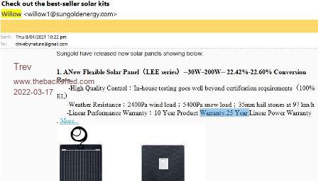 Thats not very long lasting at all. I had a friend that wanted to use flexible solar panels to cover the entire roof of a Bus, this was about 8 years ago, at the time the solar panels available were low wattage and after some research most were not Supposed to be connected in series or parallel, for those reasons we decided it was a no go. They were intended use was for 12v battery charging, I wonder if the 1000v series rating in these panels is some what exaggerated. Cheers Aaron Off The Grid |