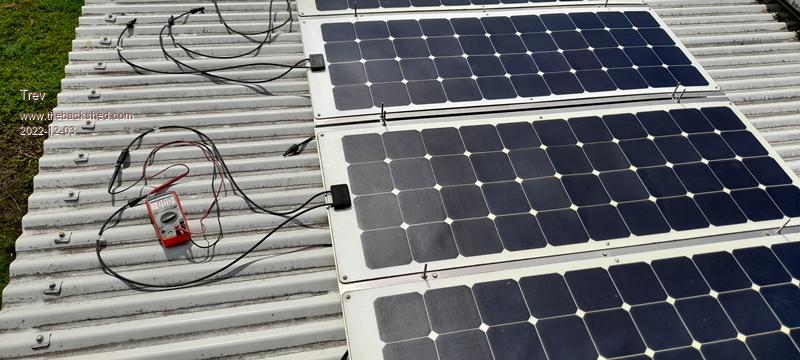 An update on the Sungold flex panels on my roof for charging the quad bike. That failing panel, has failed. I noticed last week sometime when I plugged in the quad bike for charging that it didn't charge. I didn't have time to investigate until today. Battery voltage 53.2v. Solar voltage 52.0v. So zero charge. ![]() Check the panel ![]() ![]() ![]() Replaced the failed panel, and we get charge again. ![]() So If I take today as the fail date 1 May 2022 and the install date was 9 April 2021, then we are just over 1 year. That is extremely poor performance. Edited 2022-05-01 13:04 by Trev Trev @ drivebynature.com |