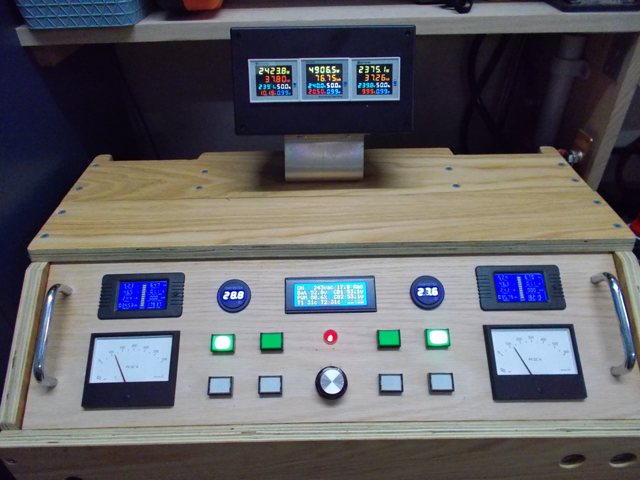 Finished the Triple multi function AC output monitor. It's that black housing on a tilted stand that sits on top of the Inverter, the stand simply slips over the rear top section of the Cabinet. I wanted all AC wiring to take a direct path straight out the back of the Toroids, these and the 4 chokes and AC filters sit in the bottom of the cabinet. I'm Trying to keep Inverter HF noise from the choke cables and DC "cables" from radiating into the AC, especially after it had gone through the AC filtering stages, so no AC monitors or wiring in the wiring looms or anywhere near the Front Control panel. Power stage 1 AC on the Left, stage 2 AC on the right and combined AC power & current in the center. BTW that's showing a power stage delta of 48 Watts at almost 5kW, it varies between 28w to 48 watts at 5kW as the AC meters have different sample and update times, and the load is varying slightly. It's now evening and the Inverter has been at 5kW for 45 minutes, up from it's normal daytime 1kw to 4kW, heatsinks sit at room temperature all the time (28° to 29° ATM), both Toroids still at 31°, they vary between 31° and 35° throughout the day - the Toroid cooling fans have not come on as yet in this dual power stage inverter. ![]() _ Edited 2024-09-11 19:43 by KeepIS NANO:Inverter V 8.2ks - Linux AvrDude GUI script V4.1 |