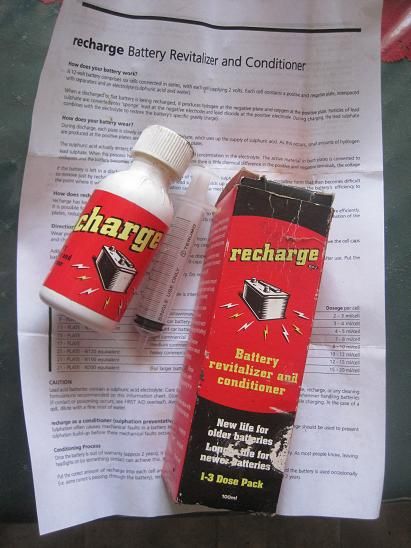 This is what I used. Lucky I kept some of the boxes for 14 years. Can you guess I NEVER throw anything out! The little bottle cost $4.95 each then. The bottle held 92 ml. The instructions said for 60 ml for a 150AH battery so I halved it and I put 46 ml in each cell. There was 30 cells originally so I got 15 bottles. Well the batteries were pretty cheap at the time, swapped for a carton of beer. Point of interest---The inside of the case of the empty cells in the batteries has a coppery coloured residue on it. Looks like the plastic has a pale rust on it. Could it be the remnant of the cadmium sulphate reaction. I have this in My Landrover diesel discovery N50Z battery This battery is now about 6 years old and still happy. From somewhere deep in the grey area, Seem to recall it was fearfully expensive. Always Thinking |