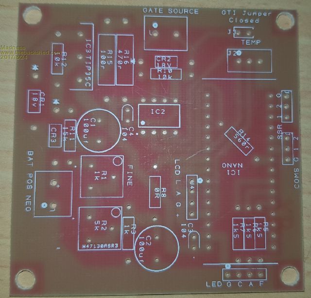 I just realised seeing your green boards I forgot to allow pads to solder the negative cable to the bottom of the power PCB. Didn't matter with no solder mask, no big deal I will just have to scrape off the areas where the cables attach. I put mine straight on the bottom so there are no holes required, leaves more copper on the top for the bridge too. There are only 10 types of people in the world: those who understand binary, and those who don't. |