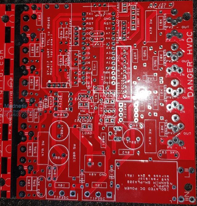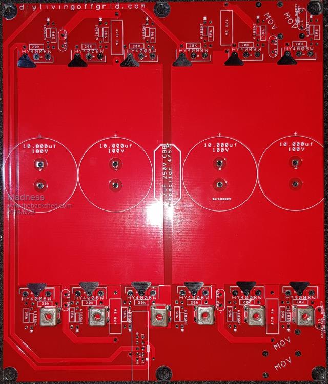 Hi Madness, I haven't seen it mentioned before, what value are the MOVs on that 4kW board? If I read the board layout correctly, are the MOVs connected from the -48V and +48V rails to the earthed case via the mounting holes? |