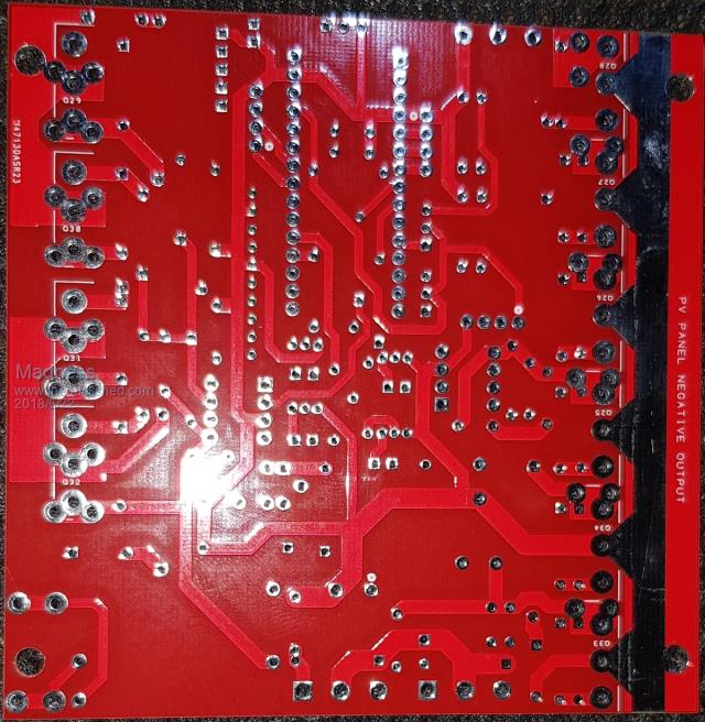 I have one of the new Charge Regulator boards assembled and been running all day today. ![]() Close up of the display, top line is battery volts and compensation value on the right for battery temperature. Line 2 is charge stage here showing absorb and minutes in absorb, on the right is time it has spent below absorb voltage since absorb started. Line 3 DC - DC and Grid Tie PWM percentage, Hot Water SSR percentage and VF indicate battery vent fan is on. Line 4 Battery temp, and target voltage. I have ordered another current sensor and waiting for it to arrive after the first one was killed by a spike from the step-down converter I was using. ![]() Here is a 4 KW Inverter PCB Assembled, just washed it ready to fit it to the heat sink. The clips of the 10 pin connector is in the way to get to the MOSFET screw however the clips are easily removed and popped back in later. ![]() ![]() Just waiting on terminals to arrive, should be here in the next few days, I will start sending PCB's tomorrow to those of you who just ordered bare boards. There are only 10 types of people in the world: those who understand binary, and those who don't. |