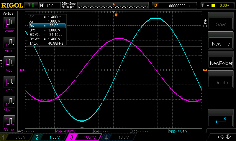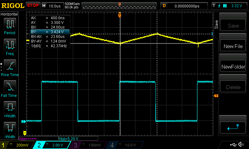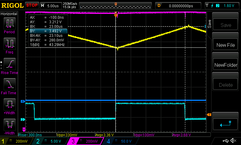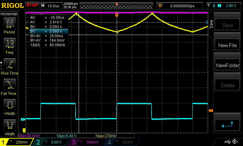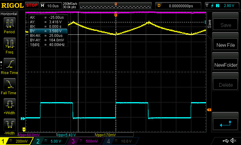 Also, I could have increased the Yellow channel gain, to give a bigger trace to measure, and so get a bit better accuracy.