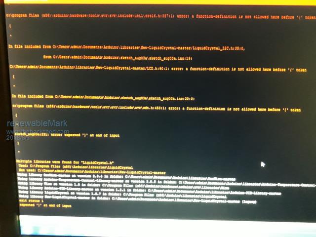 Multiple libraries were found for "LiquidCrystal.h" Used: C:\Program Files (x86)\Arduino\libraries\LiquidCrystal Not used: C:\Users\admin\Documents\Arduino\libraries\New-LiquidCrystal-masterCheers Caveman Mark Off grid eastern Melb