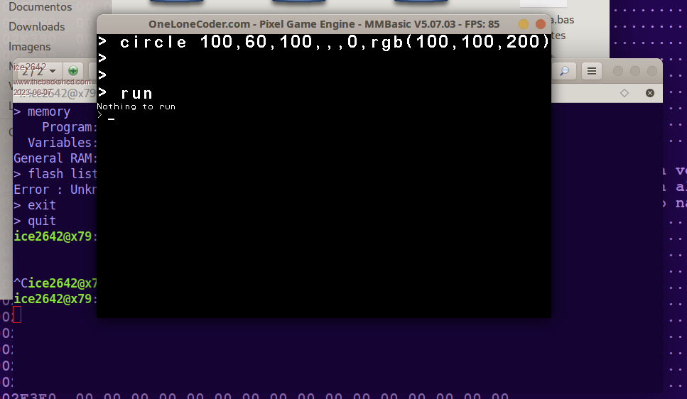 I do not use windows a very long time, but I try it on linux ubuntu 22.04 and wine 5 just for test. The MMBasic window open, but when I press F1 for editor, it list my Documents directory. basic commands, like print, do , loop, etc... work, mode 2 change the window, but no graphics. ![]() Best Regards, MMBasic 5.0707 on PicoMite VGA |