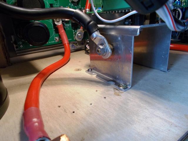That connection is just above the controller board where the common negative DC input bonding plate is bolted straight through from the Top switch/Interface deck of the Inverter cabinet, thus allowing the shortest direct connection to the power board and now to the controller ground plane, obviously both are mounted in the middle Deck which houses the Power and controller boards.